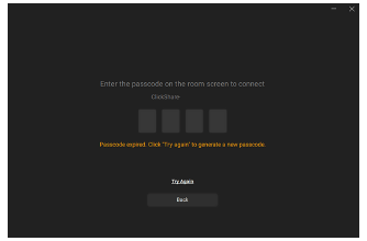 4. The sharing window opens. (Tip: Use “Try Again/Show Passcode Again” if it disappears.)