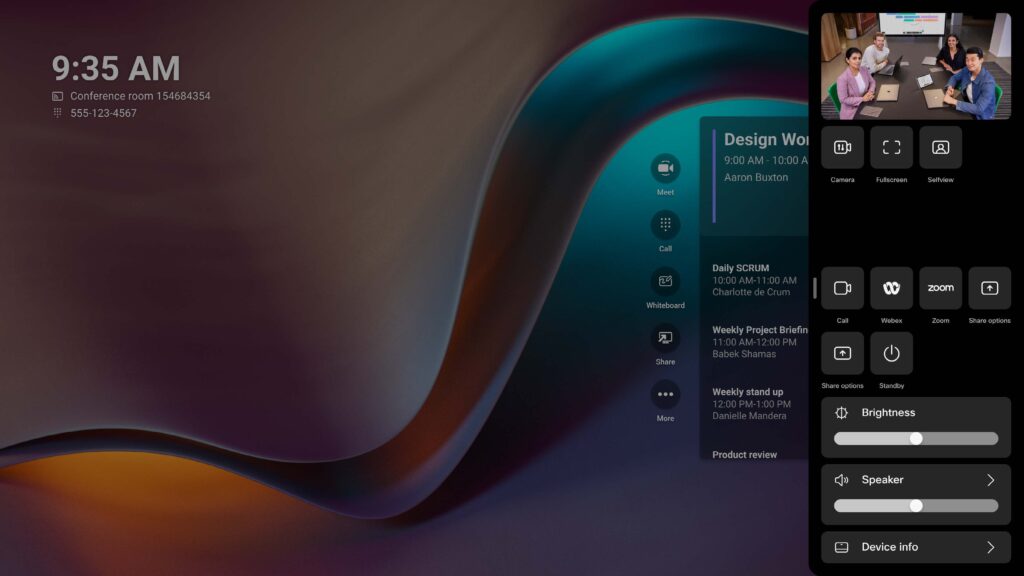 When meetings are scheduled for the room, they will be listed on the home screen.