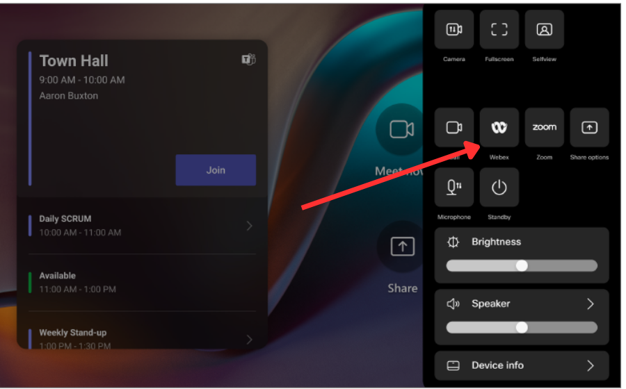 In the Control Panel, tap the Webex icon.