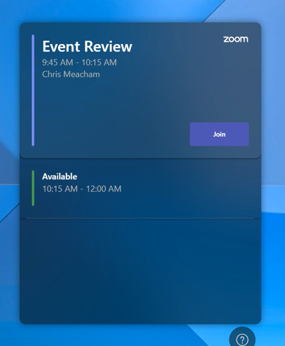 When meetings are scheduled for the room, they will be listed on the home screen.