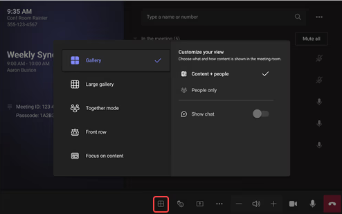 The available layouts will be selectable depending on your room’s licensing, display format, number of attendees and whether content is being presented.