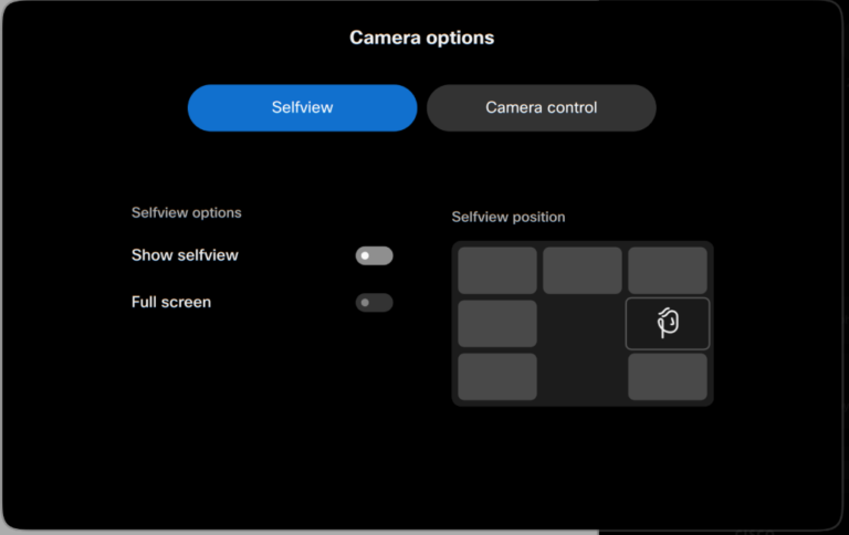Turn your selfview on or off during a call. It always appears at the top of the panel when the camera is active.