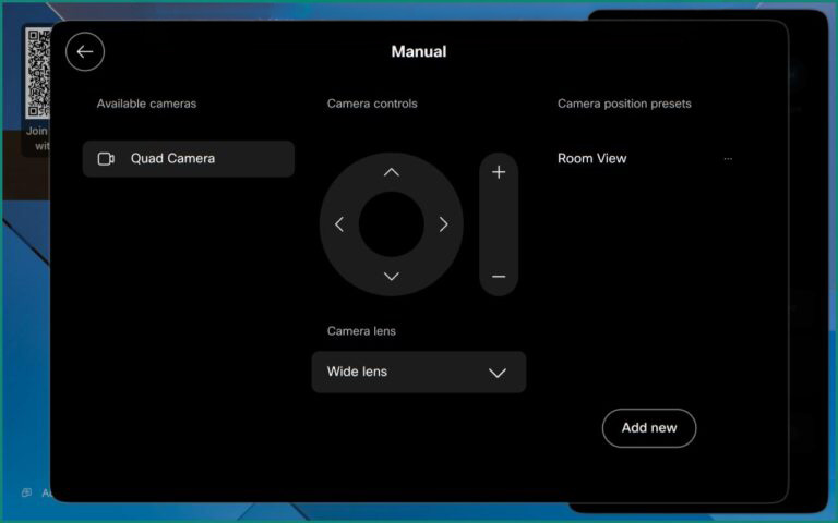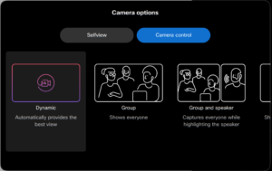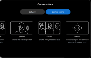 Manually control camera positioning or switch camera modes to fit your meeting needs.
